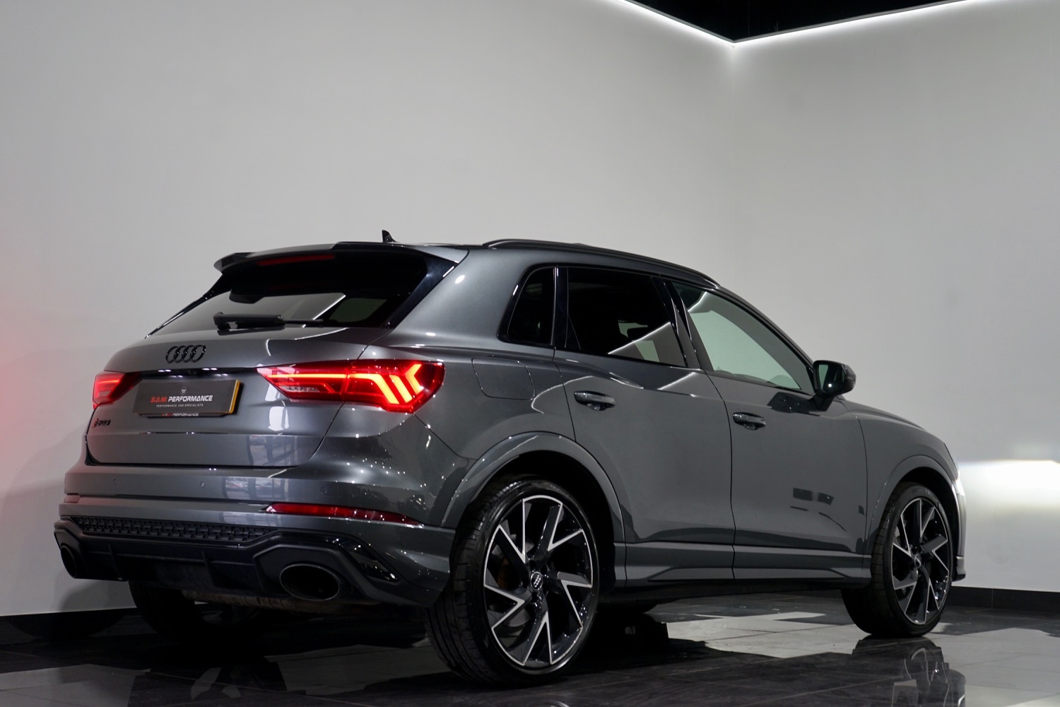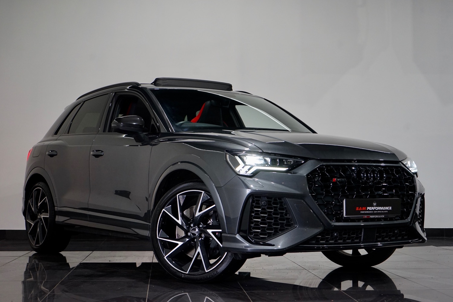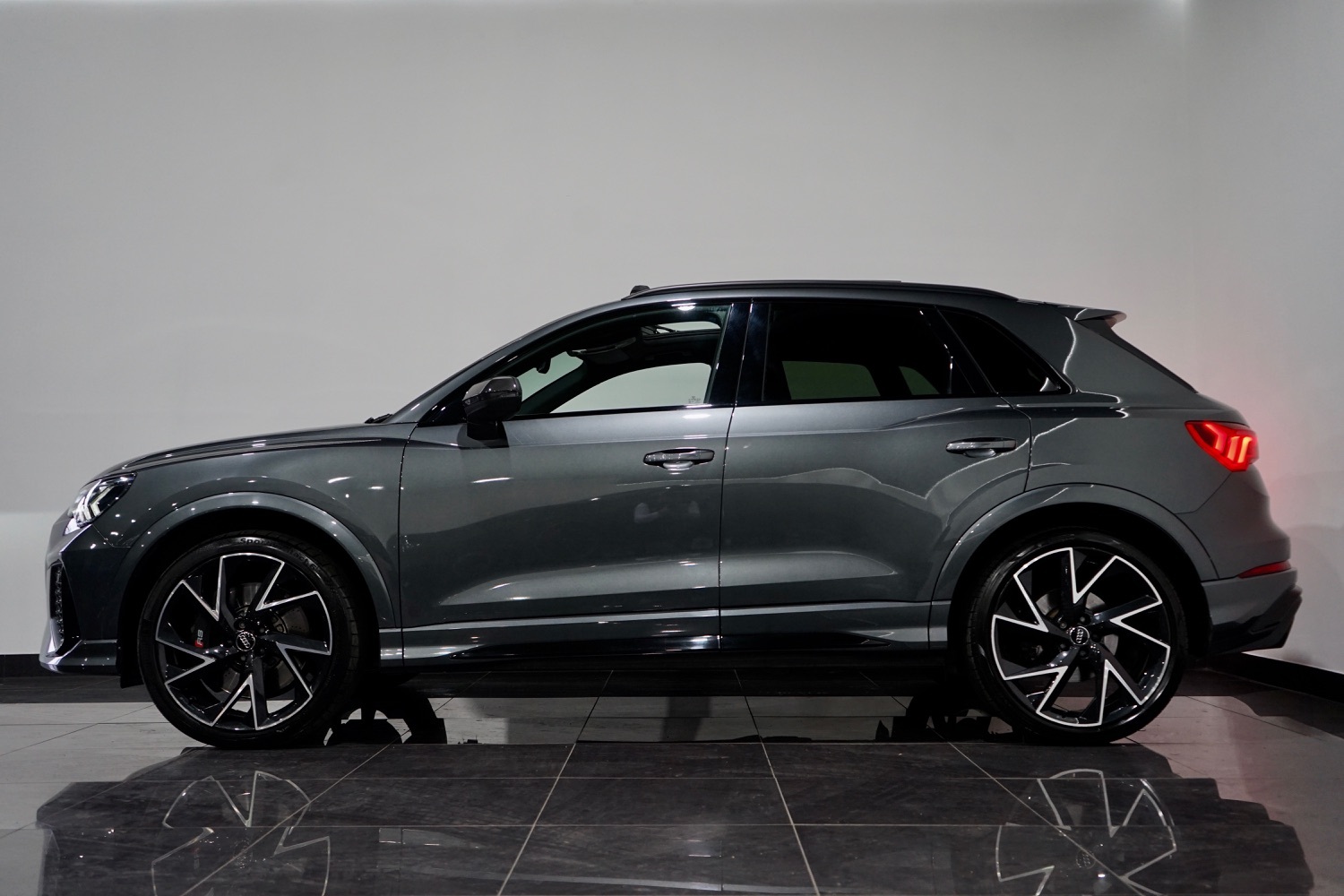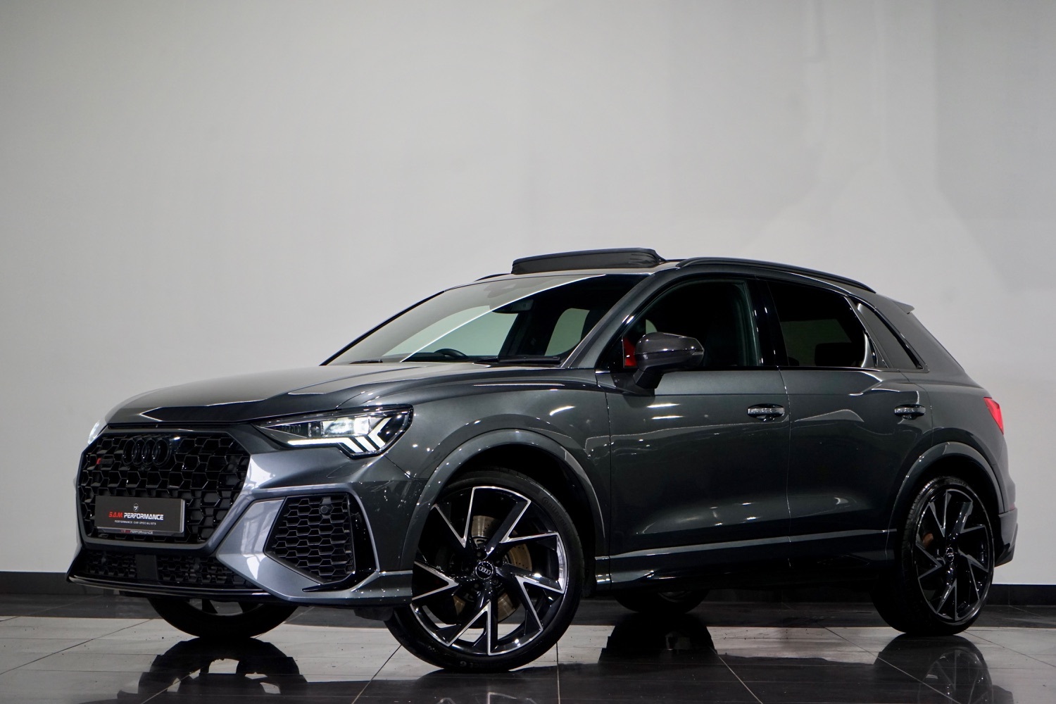 2020 (70) Audi RSQ3 Vosprung finished in Grey with contrasting Black Leather Supersport Bucket seats with Red stitching. This car comes with: Full Service History, Virtual Cockpit, Panoramic Sunroof, Supersport Diamond Quilted Bucket seats with Red Stitching, Upgraded 19 inch Alloys, Bang and Olufsen Sound System, 360 Surround Camera, Reverse Camera, Wireless Charging Port, Park Assist with Parking System Plus, Comfort and Sound Pack, Black Styling Pack, Carbon Door Mirrors, Matrix LED Headlights, Electric Heated Folding Door Mirrors, Front Heated Seats, Satellite navigation, Apple CarPlay, Adaptive Cruise control, Dab Radio, Privacy Glass, Dual climate control plus much more...