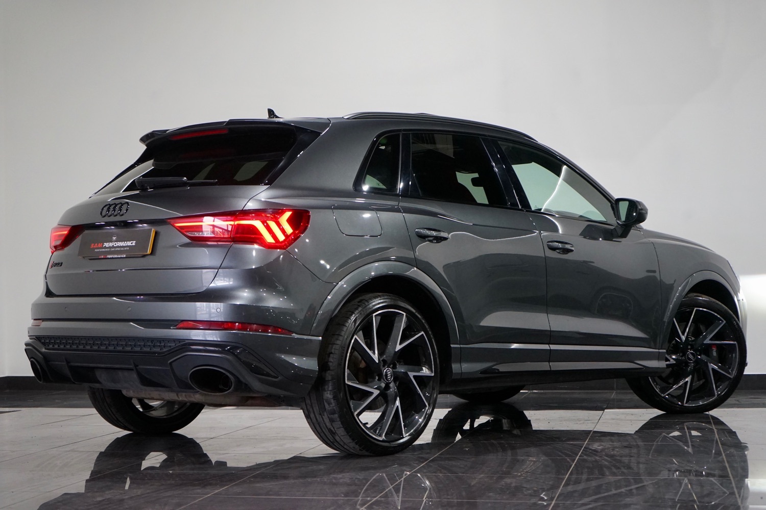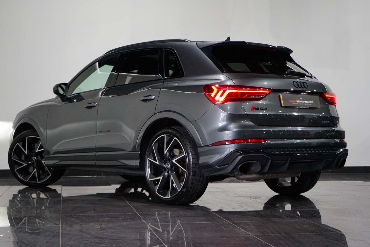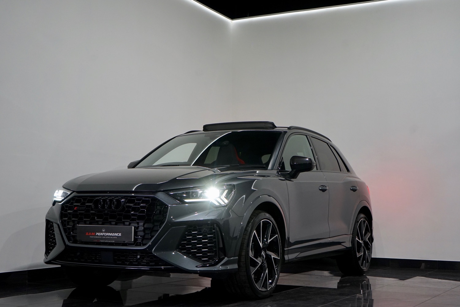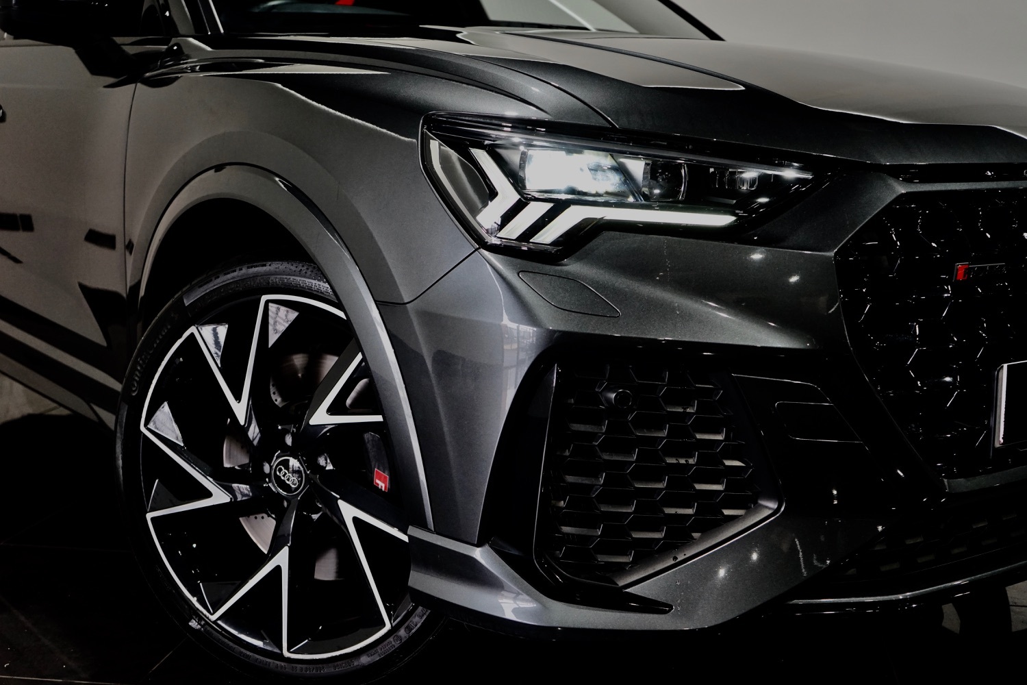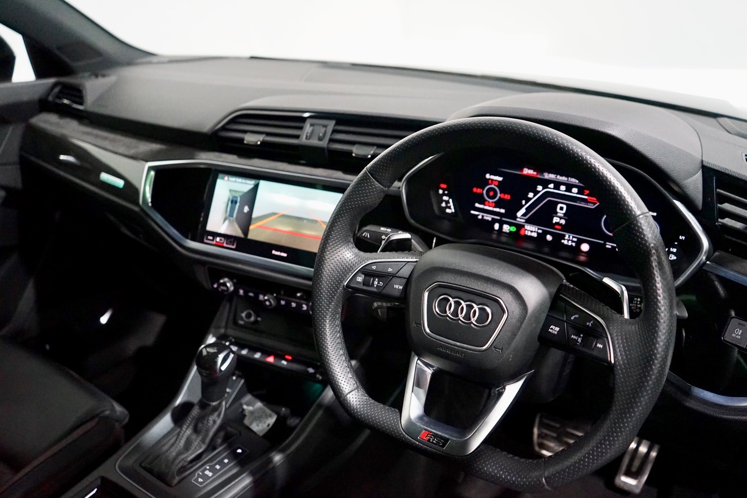 2020 (70) Audi RSQ3 Vosprung finished in Grey with contrasting Black Leather Supersport Bucket seats with Red stitching. This car comes with: Full Service History, Virtual Cockpit, Panoramic Sunroof, Supersport Diamond Quilted Bucket seats with Red Stitching, Upgraded 19 inch Alloys, Bang and Olufsen Sound System, 360 Surround Camera, Reverse Camera, Wireless Charging Port, Park Assist with Parking System Plus, Comfort and Sound Pack, Black Styling Pack, Carbon Door Mirrors, Matrix LED Headlights, Electric Heated Folding Door Mirrors, Front Heated Seats, Satellite navigation, Apple CarPlay, Adaptive Cruise control, Dab Radio, Privacy Glass, Dual climate control plus much more...