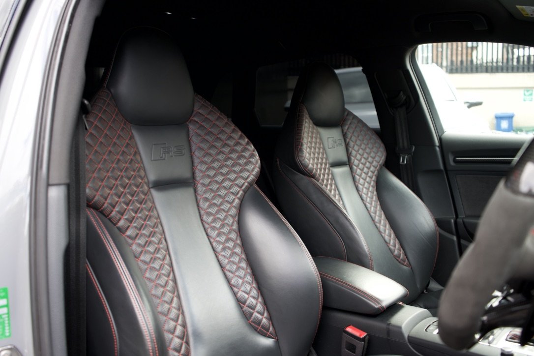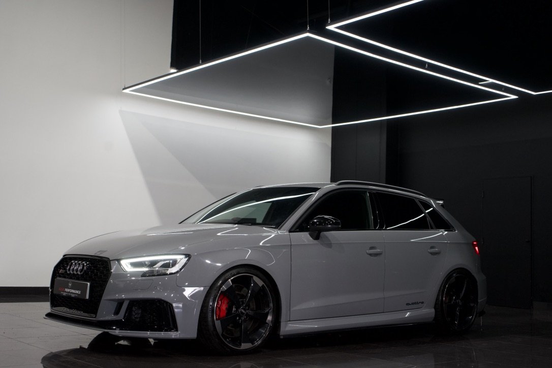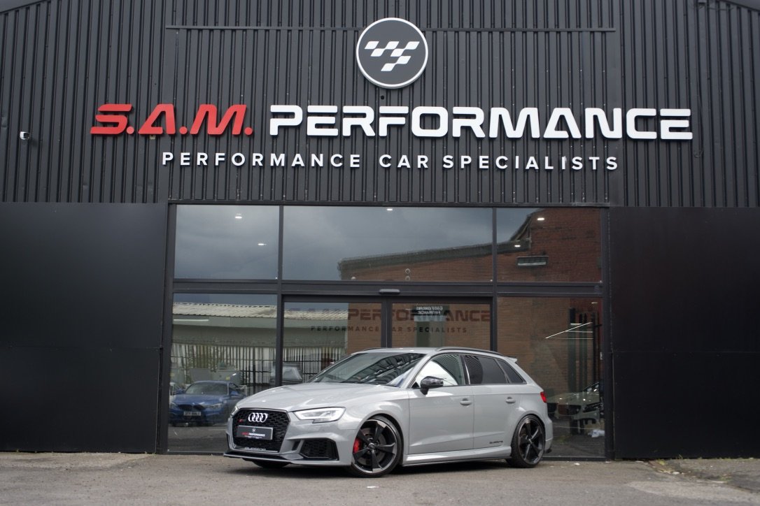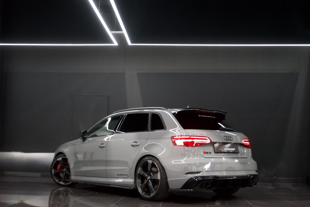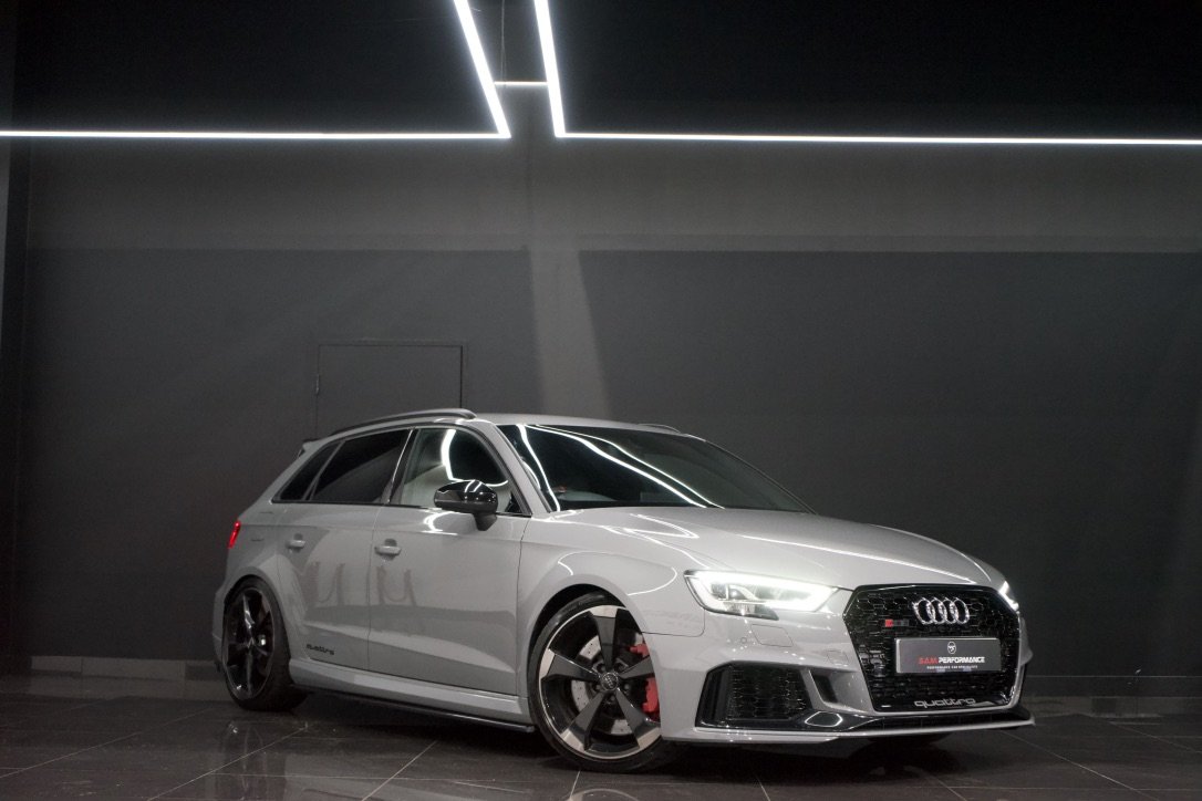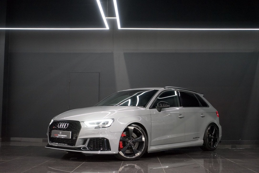 2018 Audi RS3 Sportback finished in Nardo Grey with contrasting Black SuperSport Bucket Diamond Quilted Seats with red Stitching. This car comes with: Service History, Virtual Cockpit, Supersport Bucket Seats, Comfort and Sound Package, Upgraded CARBON LED Steering Wheel, Bang and Olufsen Sound System, Reverse Camera, Keyless Start/Stop, Auto Hill Hold Assist, 19 inch Alloys, Black Styling Pack, Parking System Plus (Front and Rear parking sensors), Electric Heated Folding Door Mirrors, Front Heated Seats, Satellite navigation, Apple CarPlay, Cruise control, Dab Radio, Privacy Glass, Dual climate control plus much more...