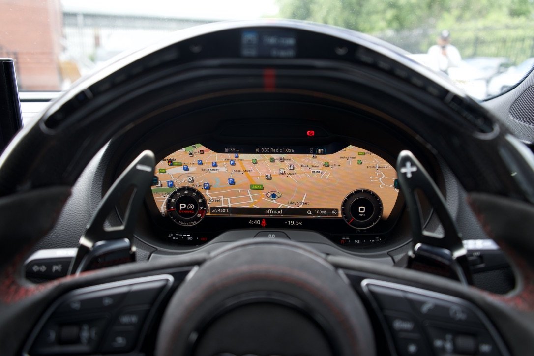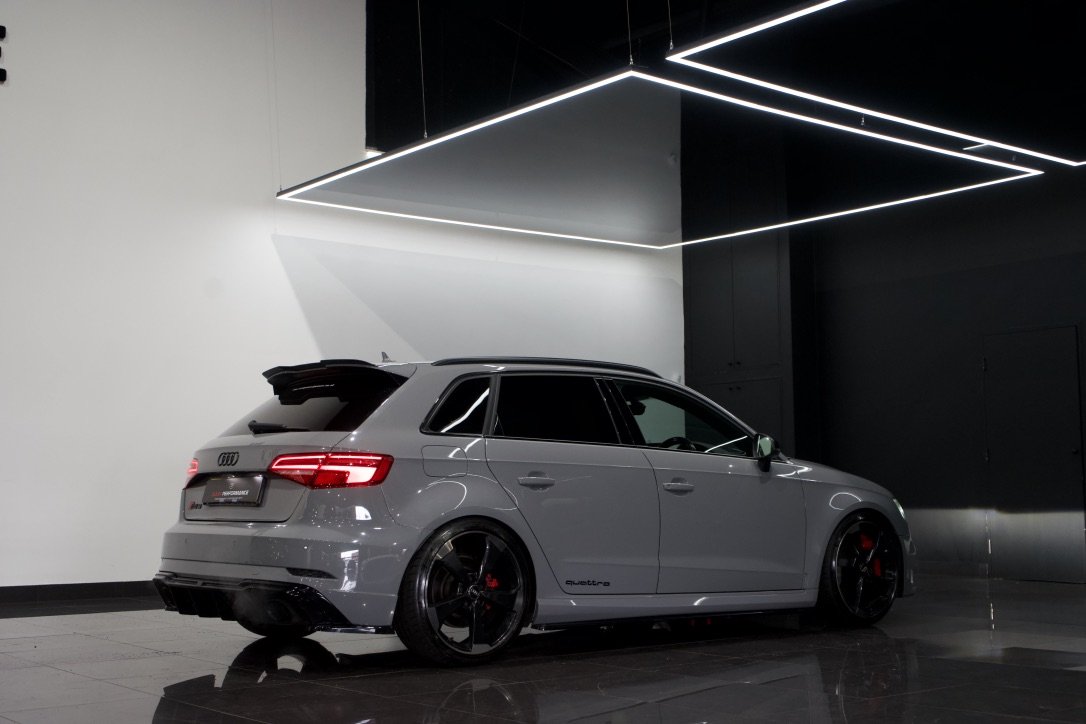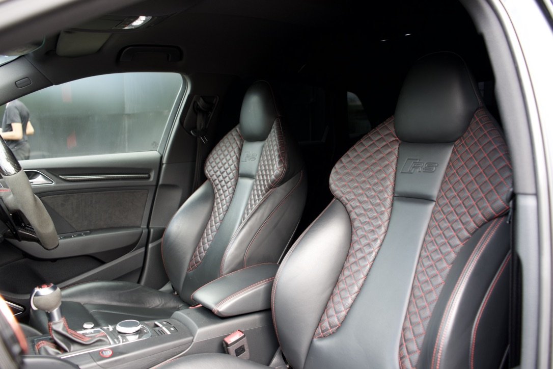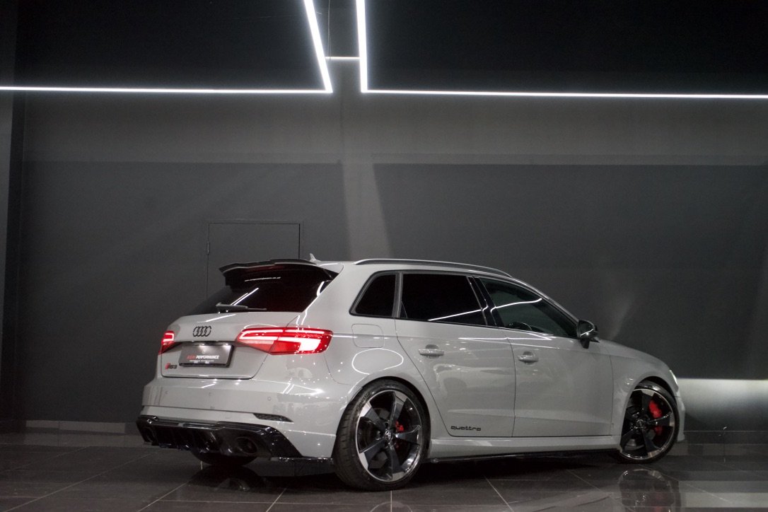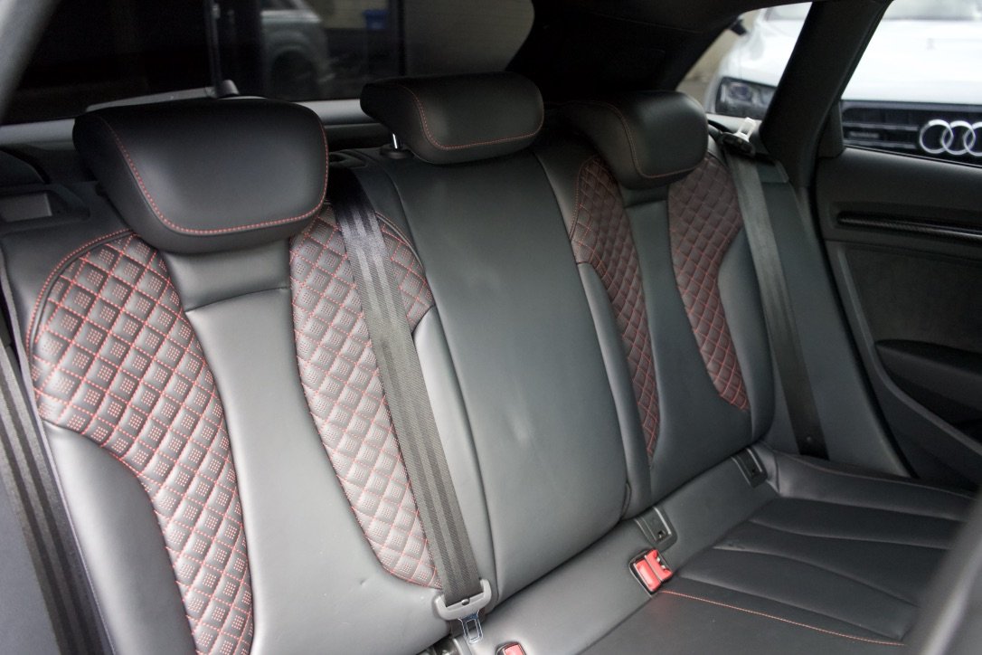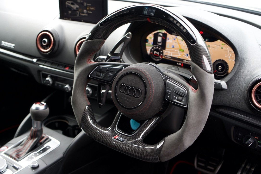 2018 Audi RS3 Sportback finished in Nardo Grey with contrasting Black SuperSport Bucket Diamond Quilted Seats with red Stitching. This car comes with: Service History, Virtual Cockpit, Supersport Bucket Seats, Comfort and Sound Package, Upgraded CARBON LED Steering Wheel, Bang and Olufsen Sound System, Reverse Camera, Keyless Start/Stop, Auto Hill Hold Assist, 19 inch Alloys, Black Styling Pack, Parking System Plus (Front and Rear parking sensors), Electric Heated Folding Door Mirrors, Front Heated Seats, Satellite navigation, Apple CarPlay, Cruise control, Dab Radio, Privacy Glass, Dual climate control plus much more...