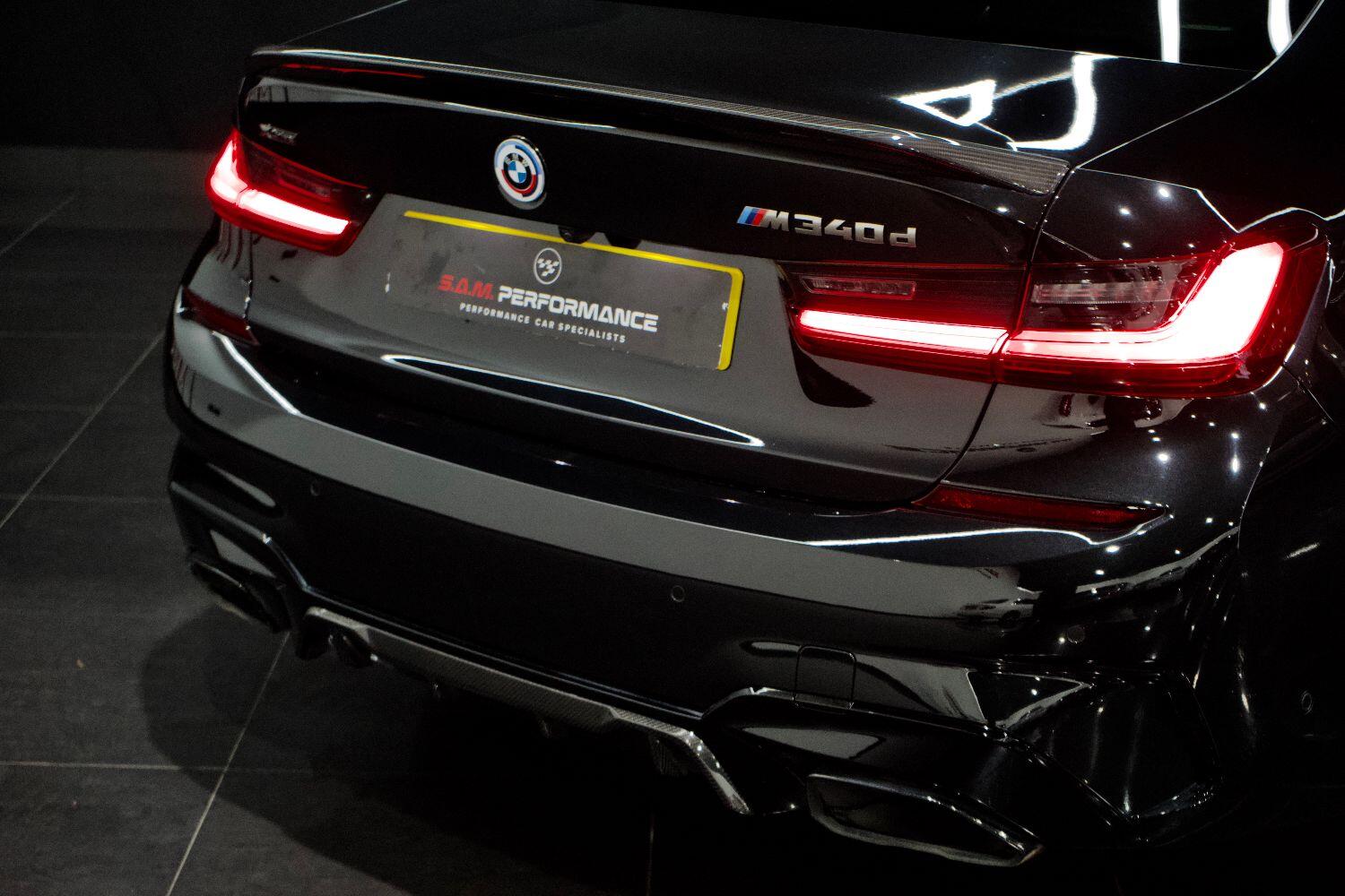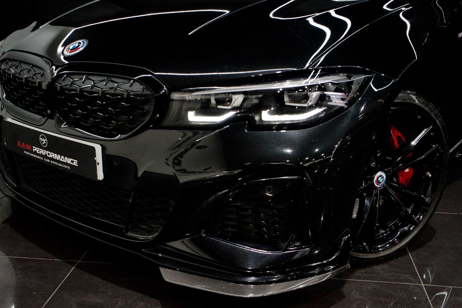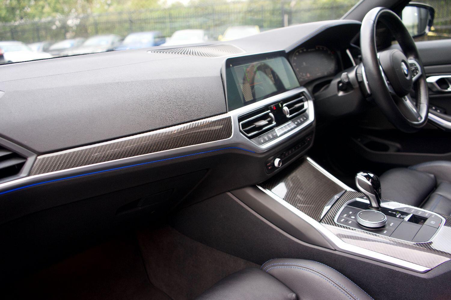 3.0 M340D Saloon 4dr Auto xDrivein in Black Sapphire With Contrasting Vernasca Leather Bucket seats. Black with Blue Contrast Stitching . This vehicle comes with: Virtual Cockpit, Electric Glass Sunroof, Head Up Display (HUD), Premium Package, Technology Pack, Shadowline Plus Pack, BMW, Driving Assistant Professional, Parking Assistant Plus Package, Driver Recorder, Wifi Hotspot, BMW Individual Lights, BMW M 50 Years Badges, M Performance Carbon Package from factory, Rear Carbon Spoiler, Rear Carbon Diffuser,Front Carbon Splitter, Carbon Fibre Interior Trim, Lumbar support, driver and front passenger, Instrument panel in Sensatec, Enhanced Bluetooth with Wireless Charging, 19 inch Alloys, Harmon Kardon Surround Sound System, 360 Surround View, Reverse Camera, Heated Steering Wheel, Front and Rear Parking Sensors, Front Heated Seats, BMW Pro Nav, plus much more...