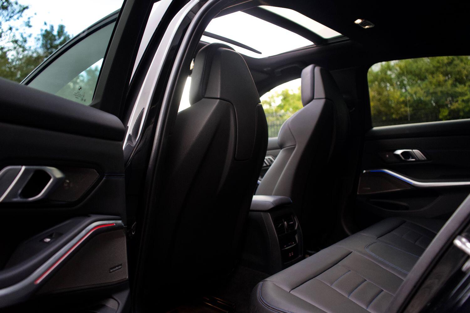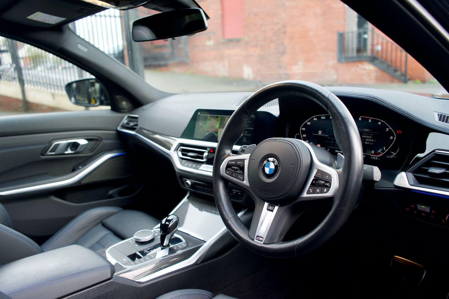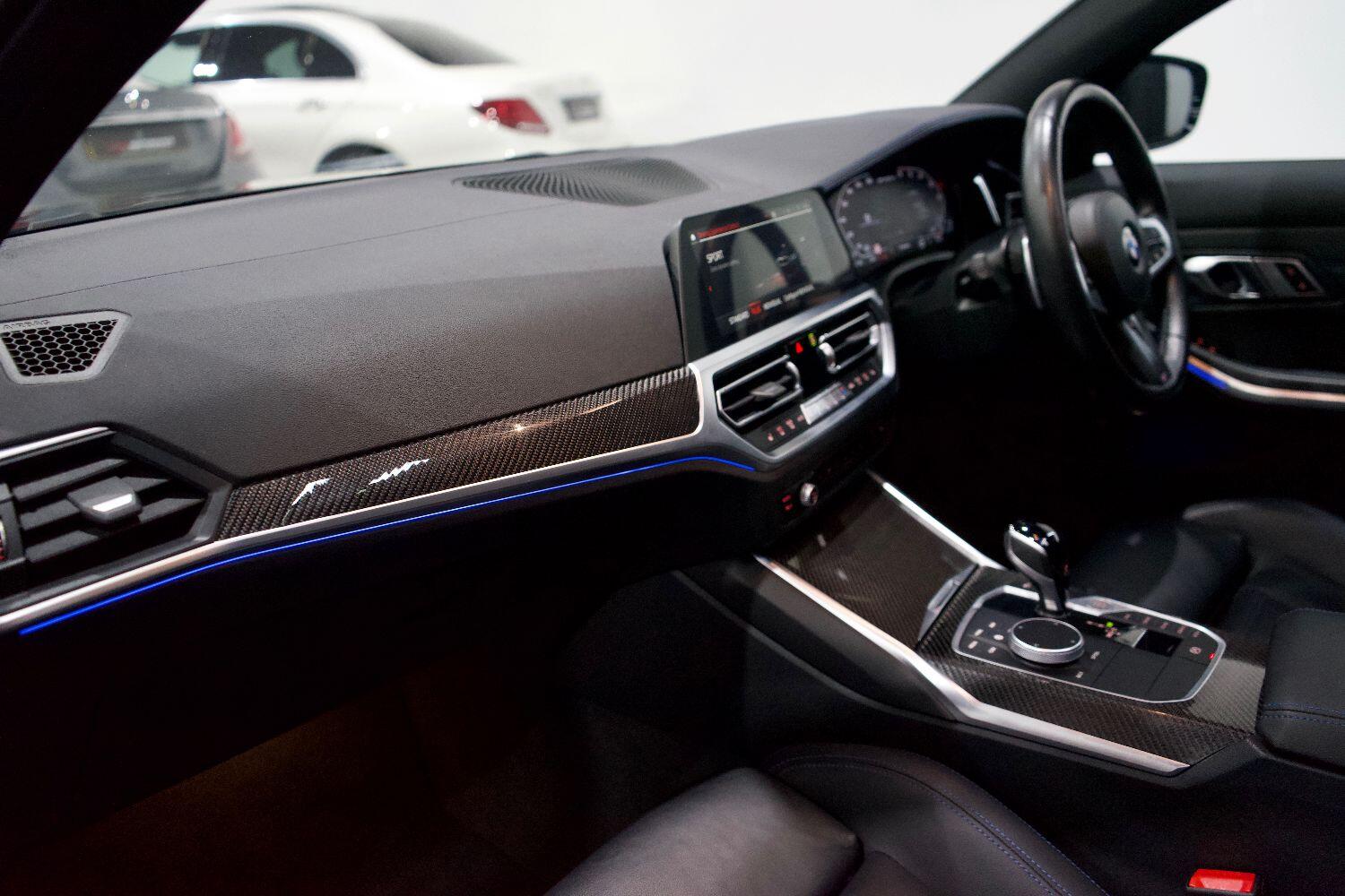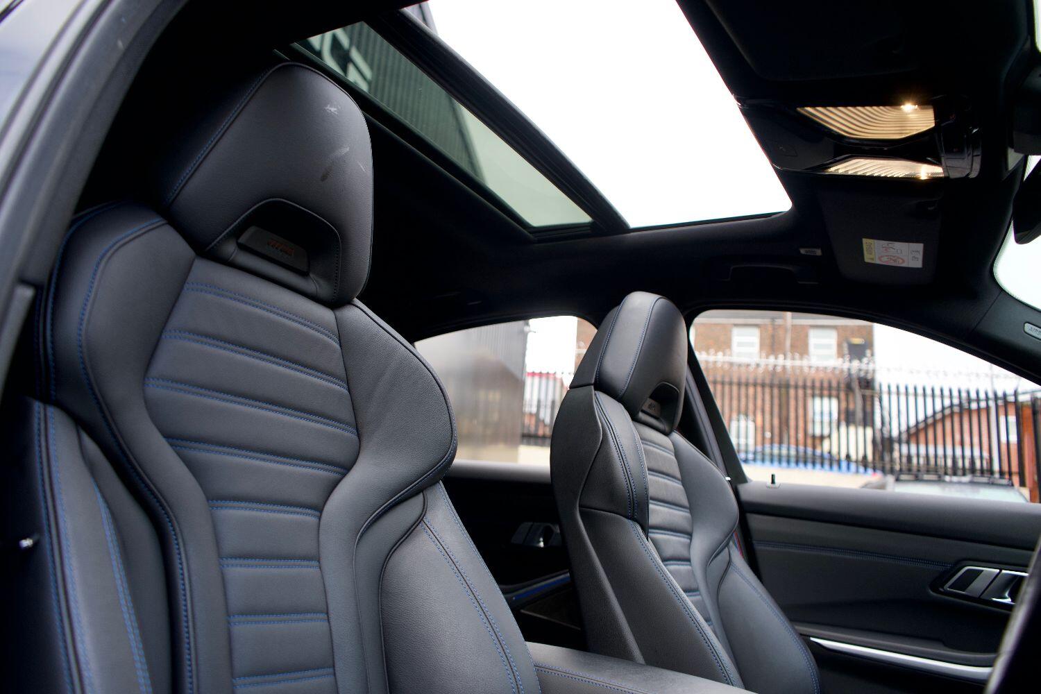 3.0 M340D Saloon 4dr Auto xDrivein in Black Sapphire With Contrasting Vernasca Leather Bucket seats. Black with Blue Contrast Stitching . This vehicle comes with: Virtual Cockpit, Electric Glass Sunroof, Head Up Display (HUD), Premium Package, Technology Pack, Shadowline Plus Pack, BMW, Driving Assistant Professional, Parking Assistant Plus Package, Driver Recorder, Wifi Hotspot, BMW Individual Lights, BMW M 50 Years Badges, M Performance Carbon Package from factory, Rear Carbon Spoiler, Rear Carbon Diffuser,Front Carbon Splitter, Carbon Fibre Interior Trim, Lumbar support, driver and front passenger, Instrument panel in Sensatec, Enhanced Bluetooth with Wireless Charging, 19 inch Alloys, Harmon Kardon Surround Sound System, 360 Surround View, Reverse Camera, Heated Steering Wheel, Front and Rear Parking Sensors, Front Heated Seats, BMW Pro Nav, plus much more...