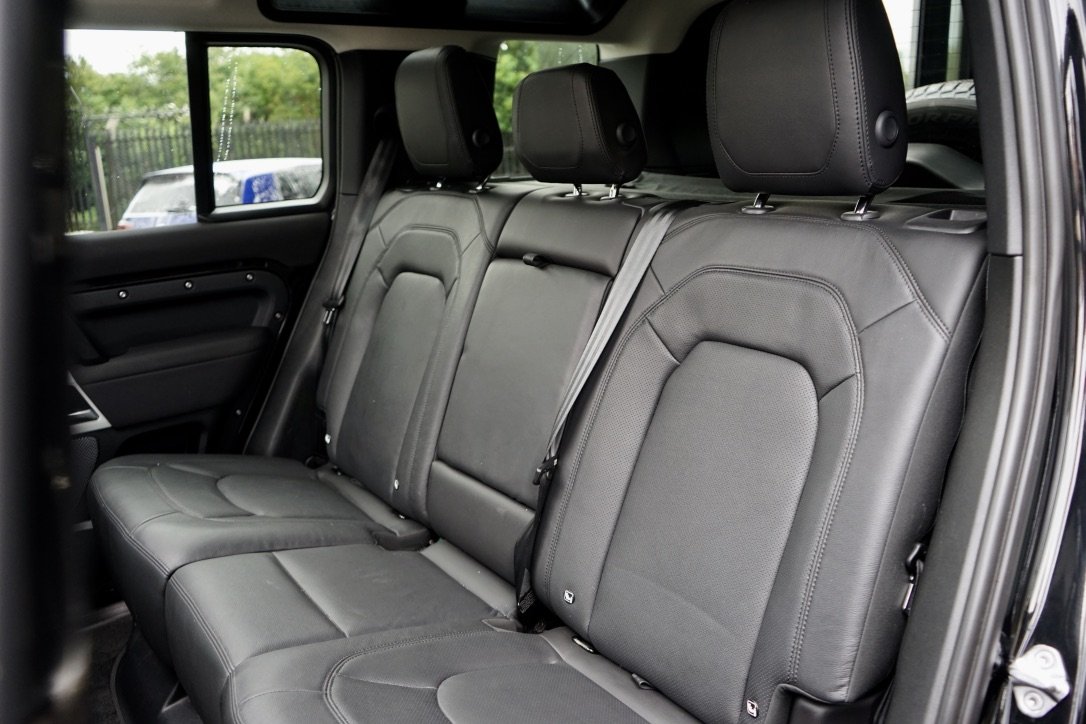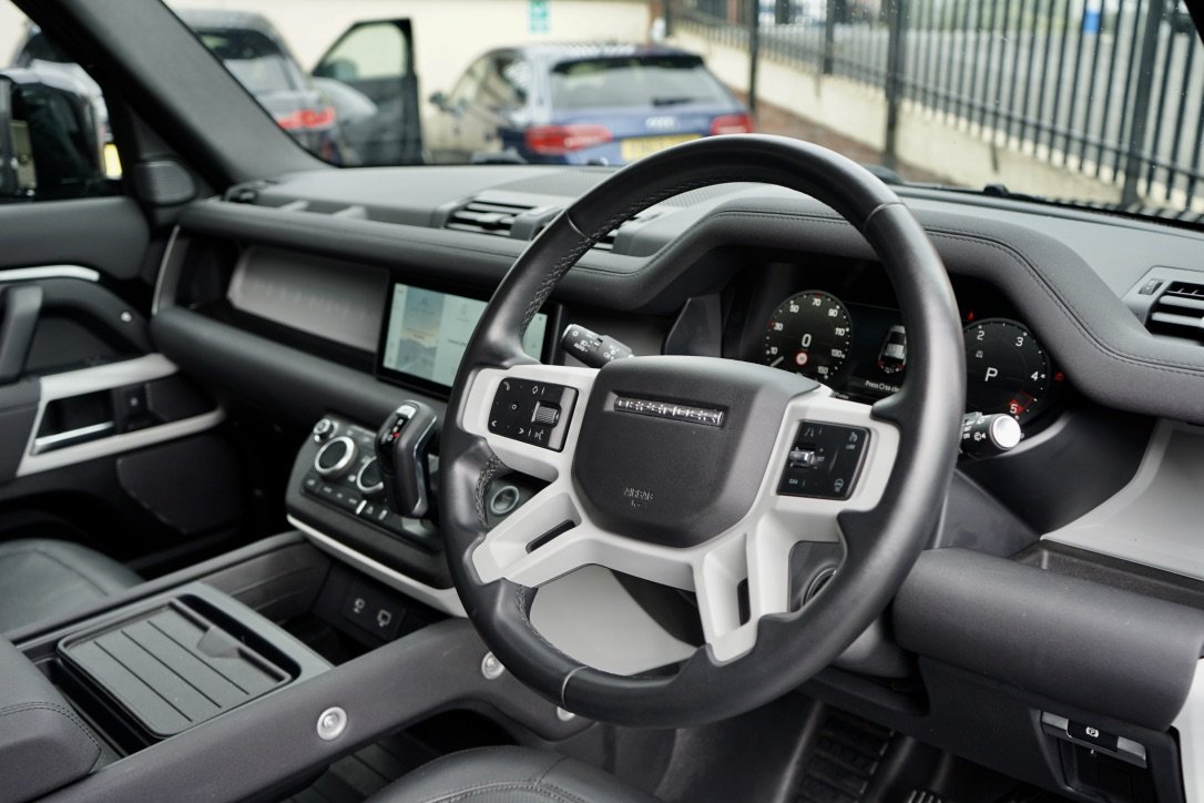 2022 Land Rover Defender 110 3.0 D250 MHEV XS Edition Auto 4WD finished in Black with contrasting Black leather interior. This car comes with an array of optional extras such as: 20 Inch Alloys in Black, Panoramic Sliding Sunroof with Electric Power Blind, Meridian Sound System, Heated Steering Wheel, Blind Spot Assist, Fridge Cooler, Lane Departure Warning, 360 Surround View, Reverse Camera, Front and Rear Parking Sensors, Front Heated seats, ClearSight Interior Rear View Mirror, plus much more...