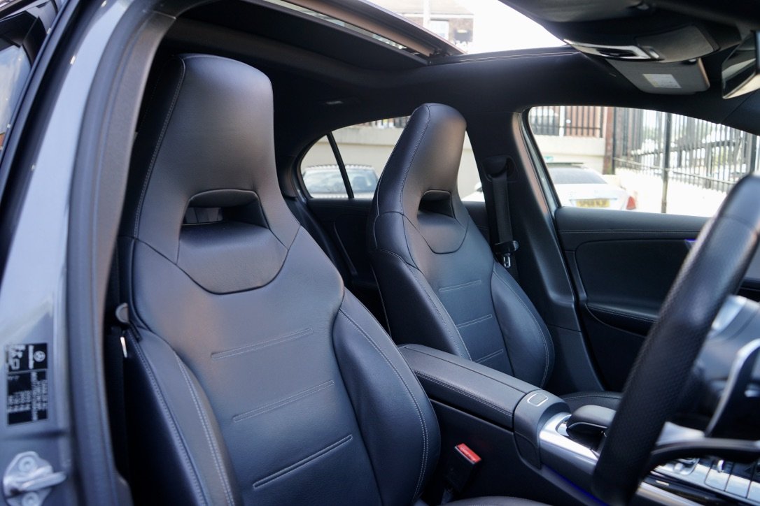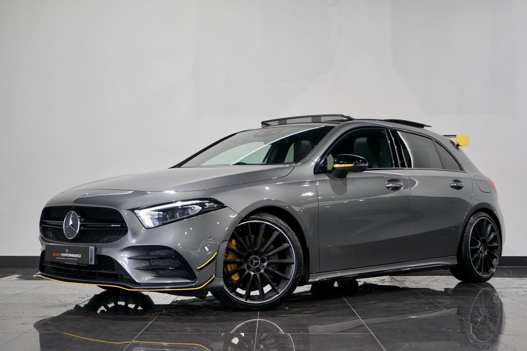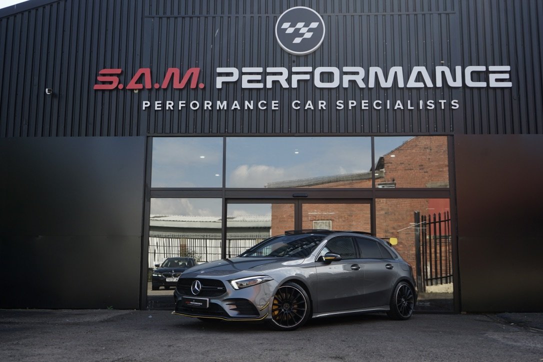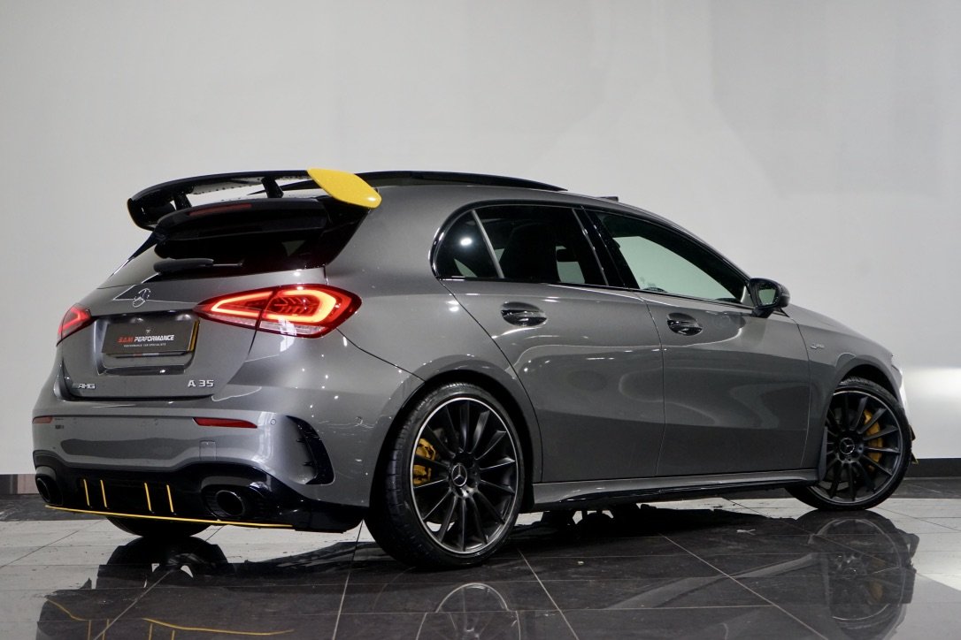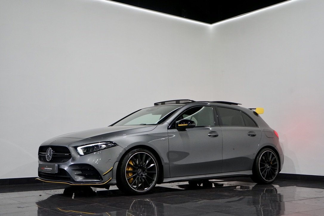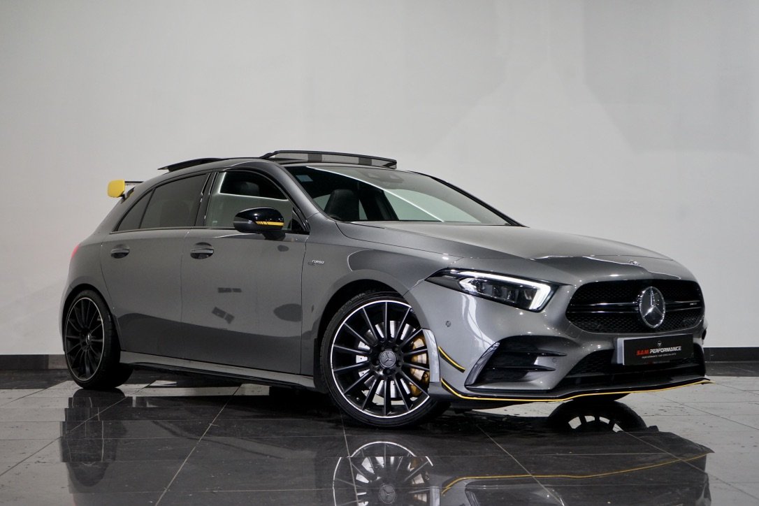 2019 (69) Mercedes-Benz A35 AMG Premium plus finished in Grey with contrasting Black Leather AMG Seats. This car comes with: Full Service History, AMG Aero Kit, Panoramic Sliding Sunroof, Head up Display, 10.25 Wide screen Digital Cockpit, Upgraded Burmester Sound System, 19 inch AMG Multi-spoke Alloys, Night Pack, Keyless Start/Stop, Reverse Camera, Miltek Exhaust system ,Eibach spacers, Front and Rear Parking Sensors,Front and Rear dash cam, LED headlights, LED tail lights, Cruise Control with a variable speed limiter, automatic two zone climate control, Satellite navigation, Multi Functional Flat bottom Steering wheel plus much more...